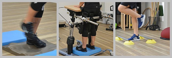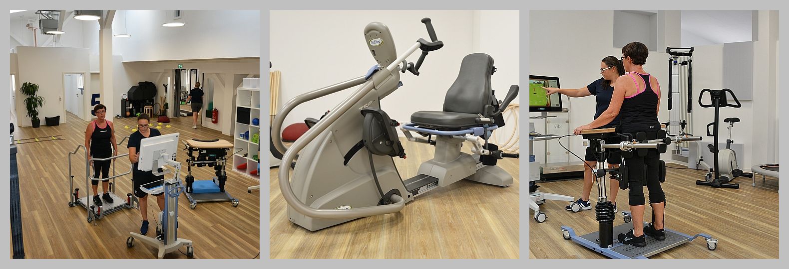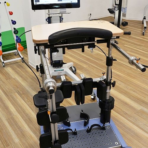 Es gibt zwei Steh- und Balance-Trainer für das Oberkörpertraining und die Rumpfstabilität. Ein gesichertes Ganzkörpertraining, je nach Beeinträchtigung, ist im NuStep möglich.